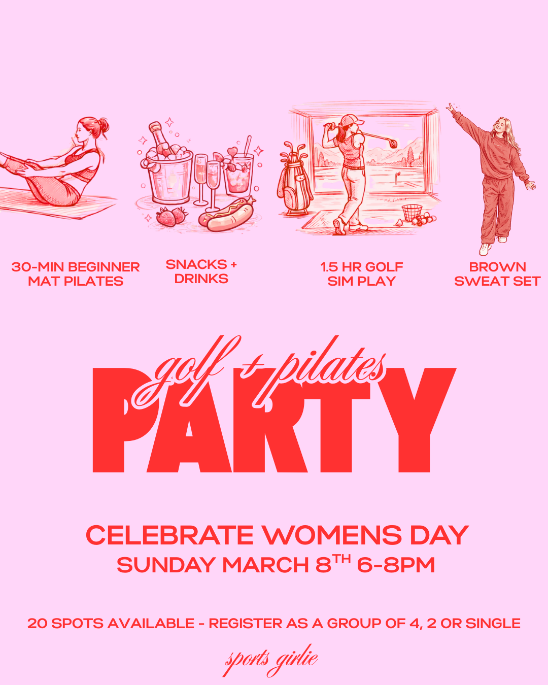 GOLF+PILATES PARTY (March 8th 6-8PM) choose with or without sweat set!!!