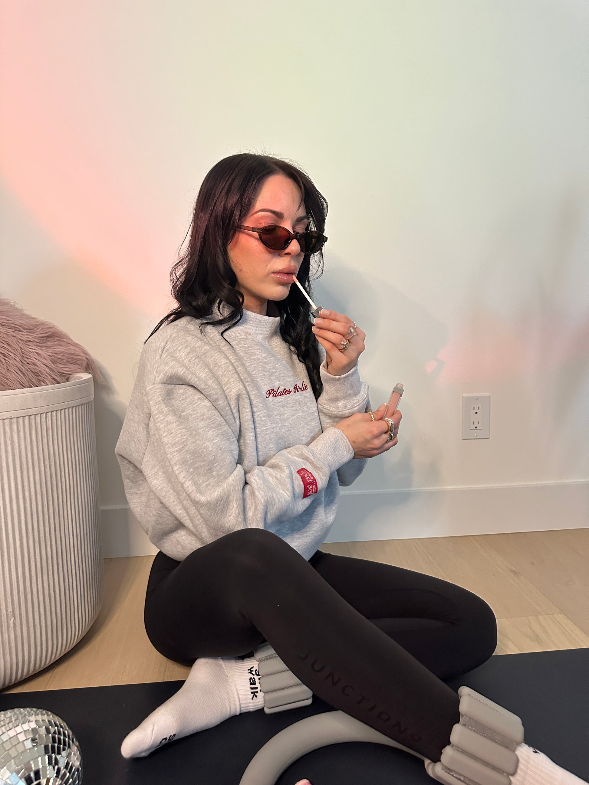 size down for a tighter fit. (Ref. I’m typically a size small but wear an XS in Pilates mock neck for a tighter fit- still slightly loose with dropped shoulders) 🩷🩷🩷 they are also fairly long (cover booties)