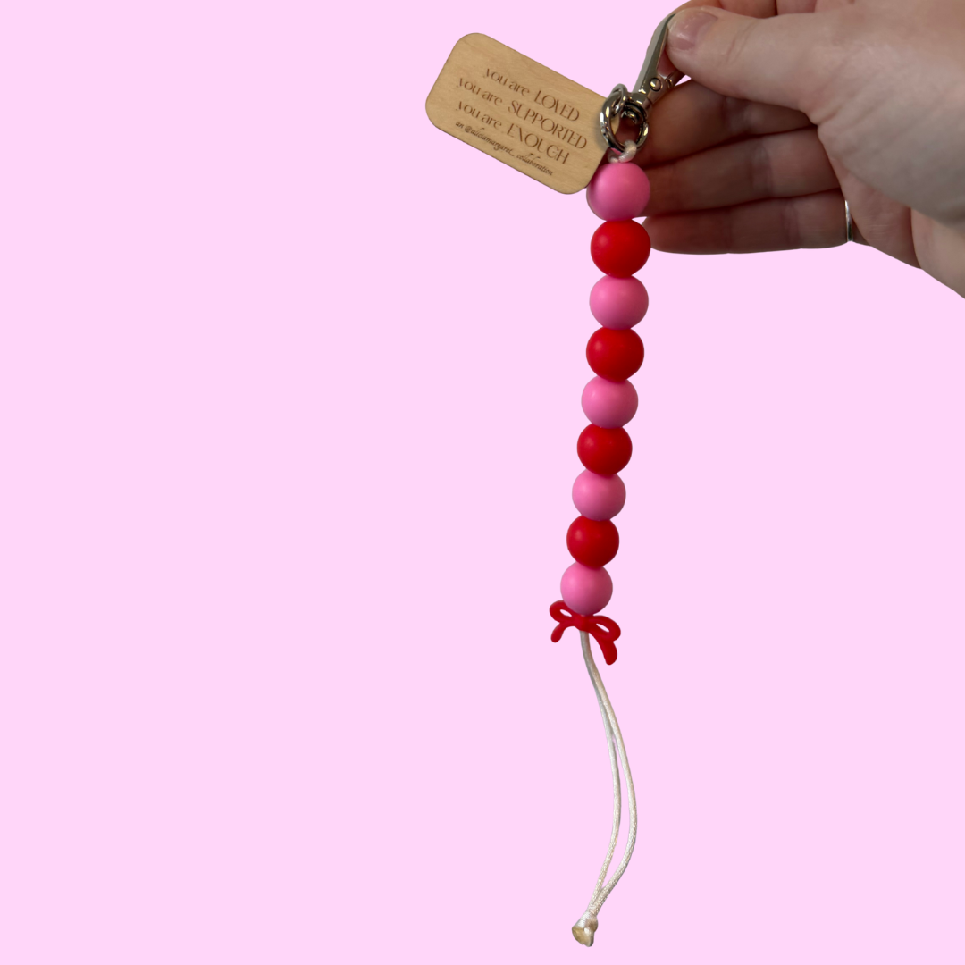 Each piece features smooth rubber beads for easy counting, a sturdy metal clip to attach to your bag, and a wooden tag engraved with the Sports Girlie logo and Alishia’s mantra: